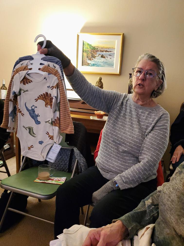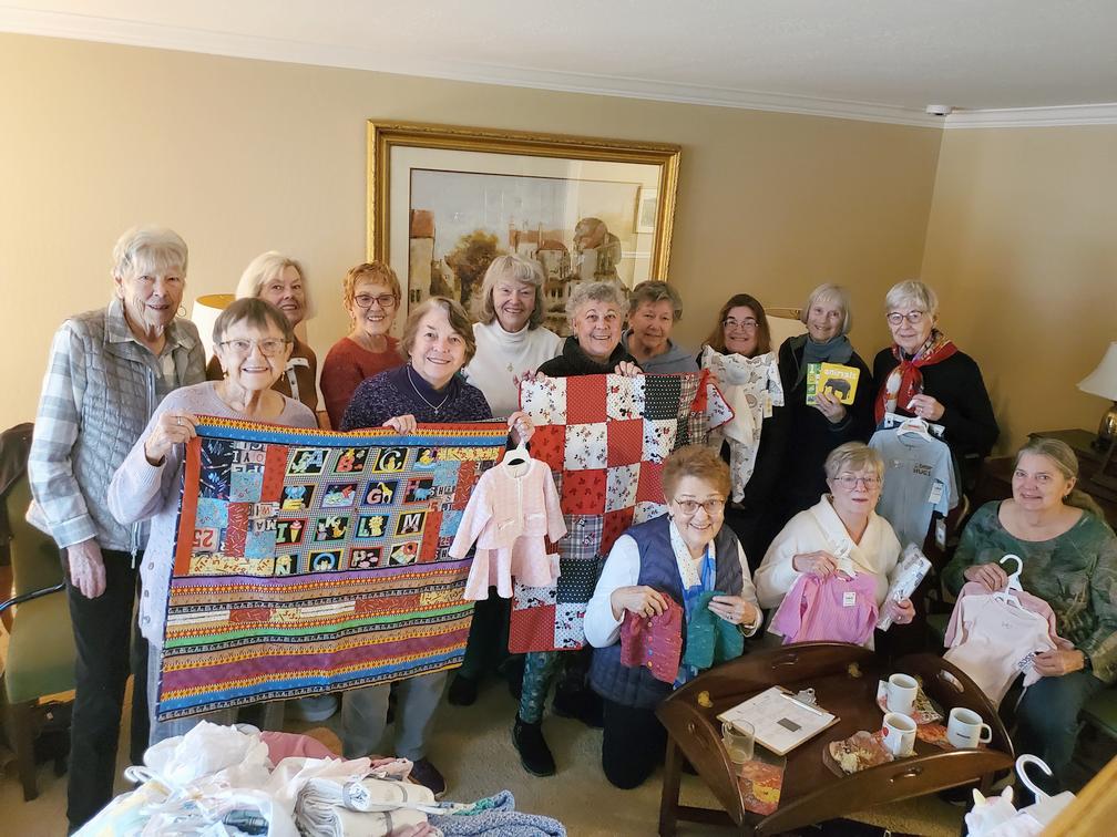 Our January 2025 Layette Shower was a successful as always. Janice Walker hosted with delicious muffins and coffee. Our donated items included many handmade items like quilts, blankets, sweaters and hats, and other adorable clothing, and diapers for new Moms and their newborns. Janice took our donations to Hillcrest Church where they collect all donations and make baskets for New Moms. In a time when there is so much need, our gifts will help reduce stress to Moms and bring lots of joy. Thanks to all for participating.