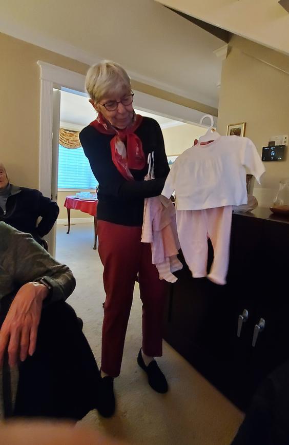 Our January 2024 Layette Shower was a very successful event. Janice Walker hosted with delicious food and drink. Our donated items included many handmade items like quilts, blankets, sweaters and hats, and other adorable clothing and diapers for new Moms and their newborns. Janice took our donations to Hillcrest Church where they collect all donations and make baskets for New Moms. In a time when there is so much need, our gifts will help reduce stress to Moms and bring lots of joy. Thanks to everyone who participated.