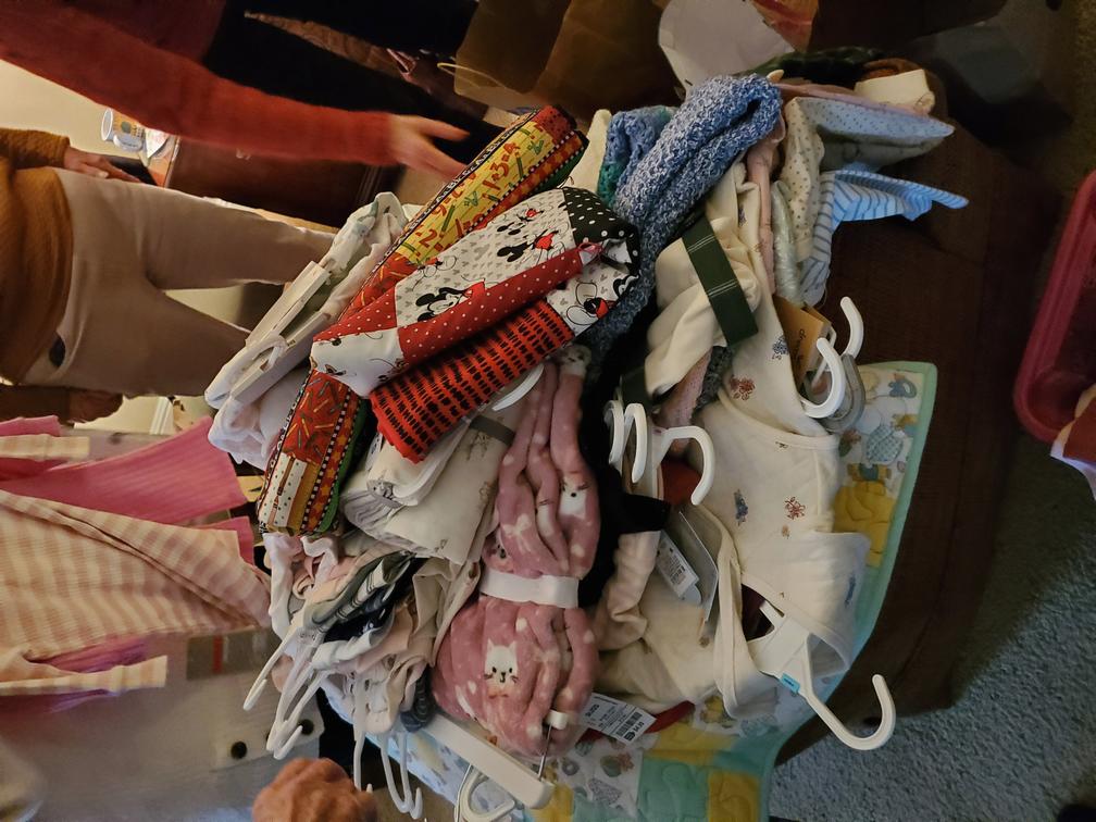 Our January 2022 Layette Shower had to be cancelled for in person attendance because of covid. But even so, it was quite successful. Janice Walker coordinated everything for us. Seventeen members brought baby items to Janice's home. Unfortunately, we did not get a chance to oogle and ahh over all of the baby items so here is everything: handmade items like quilts, blankets, sweaters and hats, as well as books, adorable clothing and needed diapers for new Moms and their newborns. Janice took our donations to Hillcrest Church where they collect all donations and make baskets for New Moms. These baby items are so appreciated. Thanks to everyone for your generosity.